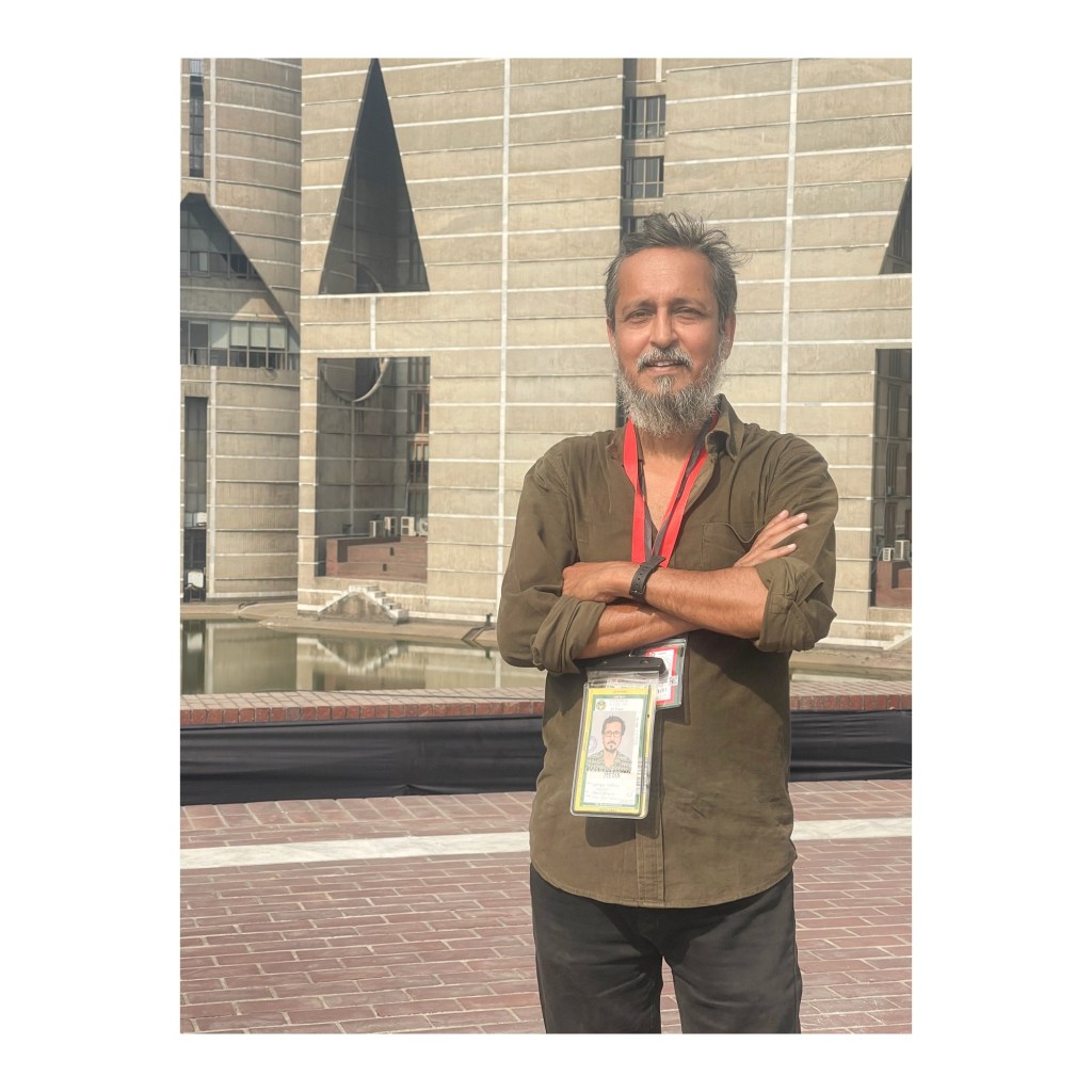 I am standing at the South Plaza of the Jatiya Sangsad Bhaban, during coverage the oath-taking ceremony of Tarique Rahman, the new Prime Minister of Bangladesh, and his cabinet members.