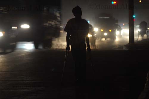 Dhaka February 2010-Lame man is walking on the street-Copy Right-Monirul Alam