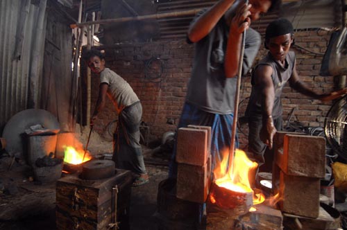 Dhaka-April 2008- Bangladeshi laborer works at molding factory near old Dhaka.The historic May Day observed in the country as elsewhere in the world with a renewed pledge to protect the rights of workers and create a labour-friendly working atmosphere. The world every year since 1986 commemorating the supreme sacrifices of workers at the Hey Market in the United States to establish the rights of eight-hour working day and with a renewed pledge to uphold the rights of working class. Copy Rights-Monirul Alam