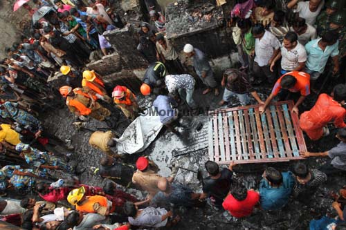 At least 116 people, mostly women and children, were burned alive and scores more wounded in a blaze in the densely populated Old Dhaka last night.The death toll may rise sharply, as rescuers early today were pulling out bodies from eight houses and 20 shops that had been reduced to ashes by the fire, the biggest in recent years. The government has declared a day of national mourning on Saturday across the country while special prayers will be offered at mosques, temples, churches and pagodas for the departed souls of the fire victims.