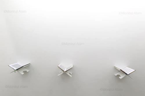 To me its a beautiful concept, when I visit the gallery and to see the exhibition remember my childhood, I read a holly Qoran using a (Rahel a stand for the Qoran) bookstand.