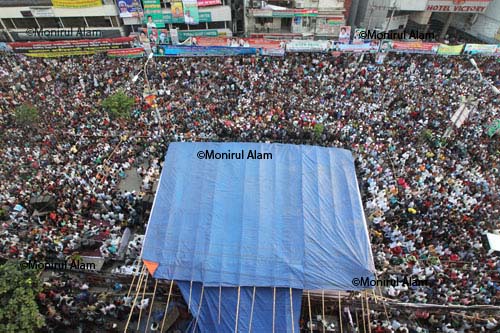 Bangladesh Nationalist Party supporters gather for a mass rally in Dhaka, Bangladesh, Tuesday, Sept. 27, 2011.Tens of thousands of supporters from a four-party alliance led by Zia’s Bangladesh Nationalist Party joined the rally.Dhaka September 2011.