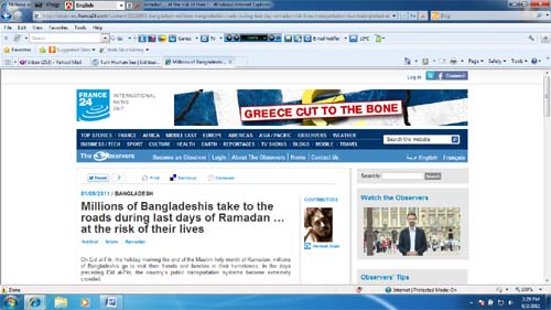Note: One of my video reports “Millions of Bangladeshis take to the roads during last days of Ramadan … at the risk of their lives” published on Observers France 24 International news, Please click on the Image to see the link page or click the following link.