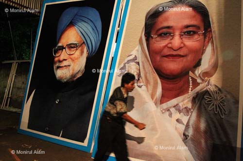 A Bangladeshi painter prepares a digital banner as a portrait of Indian Prime Minister Manmohan Singh’s and Bangladesh Prime Minister Sheikh Hasina, which are displayed in the city during of Singh’s visit in Dhaka, Bangladesh. Singh is scheduled to visit Bangladesh on 6 September 2011. Dhaka September 2011. © Monirul Alam