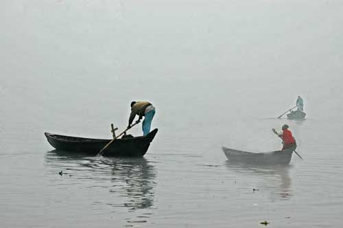 1 Dec. 2011- Dhaka – Three boats cross the bank of the Buriganga river in the winter morning Old Dhaka. November through February is the winter season in Bangladesh. Average temperatures in January vary from about 11°C in the northwestern and northeastern parts of the country to 20°C to 21°C in the coastal areas. Northern Bangladesh is cooler than southern Bangladesh, with occasional cold spells that claim lives. During this season, a centre of high pressure lies over the northwestern part of India (Himalayan zone). © Monirul Alam http://monirul.photoshelter.com/