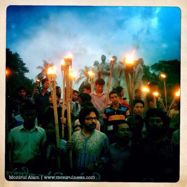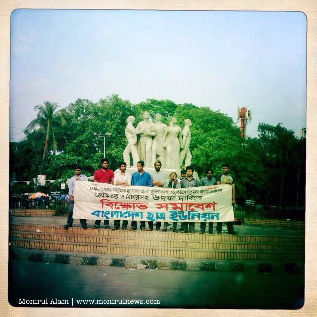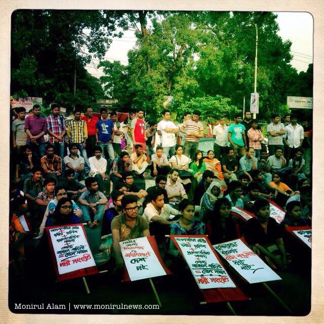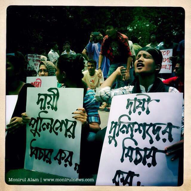Demonstrators, heading towards the Dhaka Metropolitan Police headquarters, on 10 May, 2015 were stopped at the capital’s Minto Road Police charged with batons, lobbed tear gas shells and used water cannons to drive away the protestors. At least, 10 students, injured in police action, have been taken to the Dhaka Medical College and Hospital. The role of police during the incident has been criticised and protest against police attack and sexual assault.