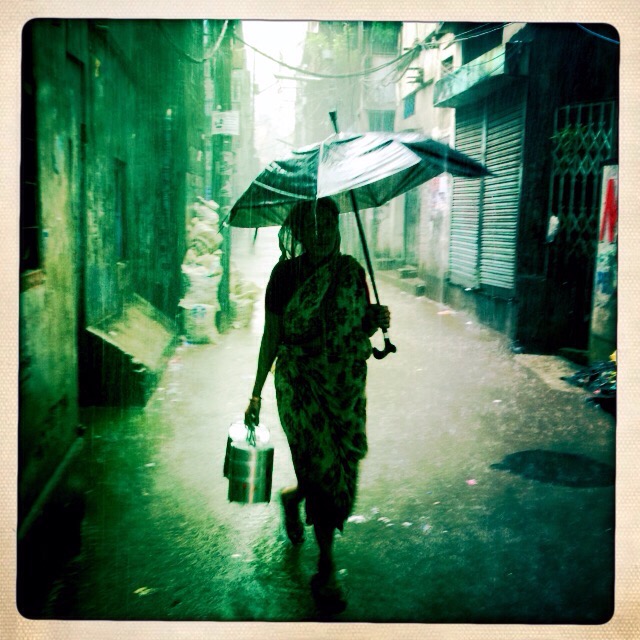 15 May 2015 Dhaka Bangladesh. A pedestrian cross the old veally during the Crazy raining in the of old Dhaka. Photo by Monirul Alam