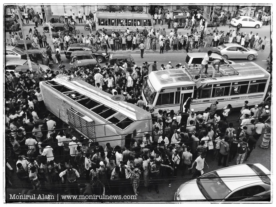 Police and witnesses said two Gabtali-bound buses of the Jatrabari-Gabtali route-8 of the city service were racing against each other for getting passengers as the road was relatively traffic-free on the public holiday.