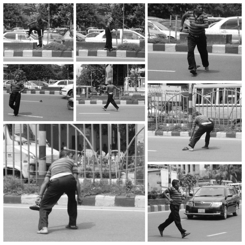 গতকাল বুধবার বাংলামোটর সিগন্যালের পাশে সড়ক বিভাজনের কাঁটাতার ডিঙিয়ে রাস্তা পার হচ্ছিলেন একজন পথচারী। তাড়াহুড়া করে রাস্তা পার হতে গিয়ে হঠাৎ তাঁর পায়ের স্যান্ডেল খুলে যায়। দ্রুত গতিতে গাড়ি আসছে দেখে কোনো রকম দৌড়ে রাস্তা পার হন তিনি।
