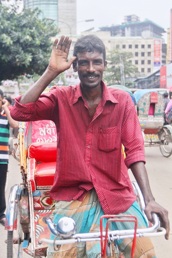 ছবি তোলা শেষ করে ফিরে যাচ্ছি । হঠাৎ পেছন থেকে একজন ডাক দিলেন, ভাইজান ! আমার একটা ছবি তুলবেন ? আমি তাকিয়ে দেখি একজন রিকশা চালক, হাসি মুখে তার রিকশা নিয়ে দাঁড়িয়ে । আমি ছবি তুলতেই সালাম দেওয়ার ভঙ্গি একটা হাসি দিলেন । তার নাম মান্নান,ঢাকা শহরে এসেছেন ভাগ্য পরিবতর্নের জন্য । কঠিন পরিশ্রমের কাজ রিক্সা চালিয়ে তার ভাগে্যর পরিবর্তন ঘটাতে চান ! আহা— মানুষের জীবন . . .