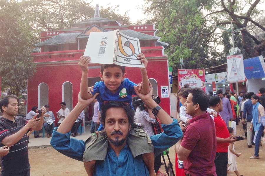ছবি তোলা শেষ কইরা সামনের দিকে আগাইয়া যাইতেছি— হঠাৎ কইরা মেঘের মা পেছন থ্যাইকা আমার পাঞ্জাবি ধইরা একটা টান দিয়া বলে, উন্মাদের স্টলে চল— উন্মাদ কিনব ! মেঘ পাশ থেকে বলল, বাবা উন্মাদ কি জিনিস ? আমি মেঘ’কে বলালম, বাবা উন্মাদ হচ্ছে— একটা স্যাটায়ার ম্যাগাজিন,আহসান হাবীব হইলো এইটার সম্পাদক ও প্রকাশক । ও কি বুঝলো কে যানে—বলে, আমার ডাইনোসারের বই কিনা দাও । আমি বলালম—ঠিক আছে বাবা !