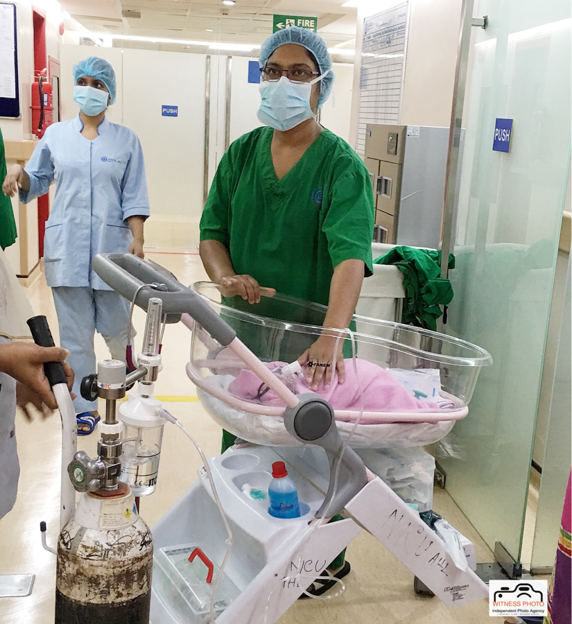 Photojournalism: Bangladeshi doctor examines a baby girl born after an half-hours by C-section or caesarean delivery at the local hospital in Bangladesh on July 2017. In some cases, C-sections are planned because of medical reasons that make a vaginal birth risky. While the World Health Organization recommends a C-section rate of 10-15% of total births in the developing world, the figure is often much higher. National Institute of Population Research and Training’s Bangladesh Demographic and Health Survey 2014 said that the percentage of births delivered by C-section has been increasing over time, from 4 per cent in 2004, to 9 per cent in 2007 and to the current level of 23 per cent in 2014. © Monirul Alam / WITNESS PHOTO July 2017 Old Dhaka, Bangladesh