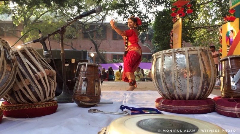 Alternative Journalism @ 13 February 2018, Pahela Falgun, the first day of Spring in the Bengali month of Falgun, is being celebrated at Bakultola of the Institute of Fine Arts Dhaka University. © Monirul Alam / WITNESS PHOTO
