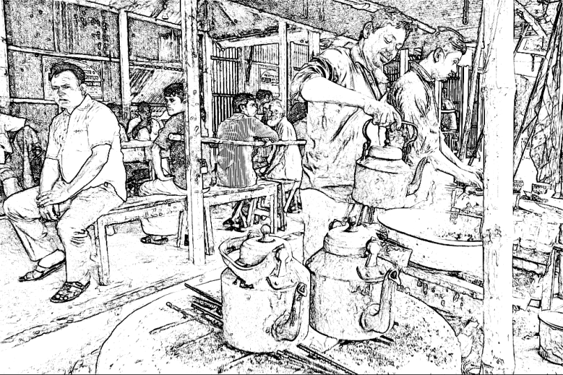 তিনি আমাকে মটরসাইকেলে করে বাজারে নিয়ে এলেন । এটি একটি গ্রাম্য—ছোট বাজার । বাজারের চায়ের দোকানটিতে প্রবেশ করেই দুই কাপ চায়ের জন্য বলা হলো । আমি দেখলাম— বেশ বড় সাইজের তিনটি কেটলিতে চা বানানো হচ্ছে, মাটির চুলাটিতে। কেটলি তিনটি আগুনে পুড়ে পুড়ে ভিন্ন একটা রঙ ধারণ করেছে। এই দোকানটিতে যে প্রচুর চা বিক্রি হয় তা ঐ চায়ের তিনটি কেটলি দেখলে বোঝা যায়; পাশাপাশি ছোট সাইজের ১৪/১৫টি চায়ের কাপের সারাক্ষণ ঝনঝনানির শব্দে এক ধরণের মুগ্ধতা লেগে থাকে । দোকানে বসা লোকজন গরুর দুধ দিয়ে বানানো গরম গরম চায়ের স্বাদ নিতে নিতে টিভি দেখছেন, কেউ কেউ নিজেদের মধ্যে আলাপ জুড়ে দিয়েছেন। দোকানী এক গাল হেসে আমাদের বসার জায়গা করে দিলেন । বোঝা যায়; সে এই দোকানটিতে নিয়মিত চা খেতে আসেন ।