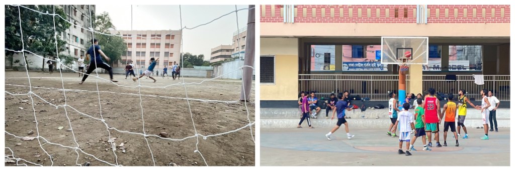 After our school classes ended then we we’re in our playgrounds, to playing football, basketball, table tennis and handballs, but I preferred always played football. All our playgrounds and courts are separated and it’s looking beautiful that time.