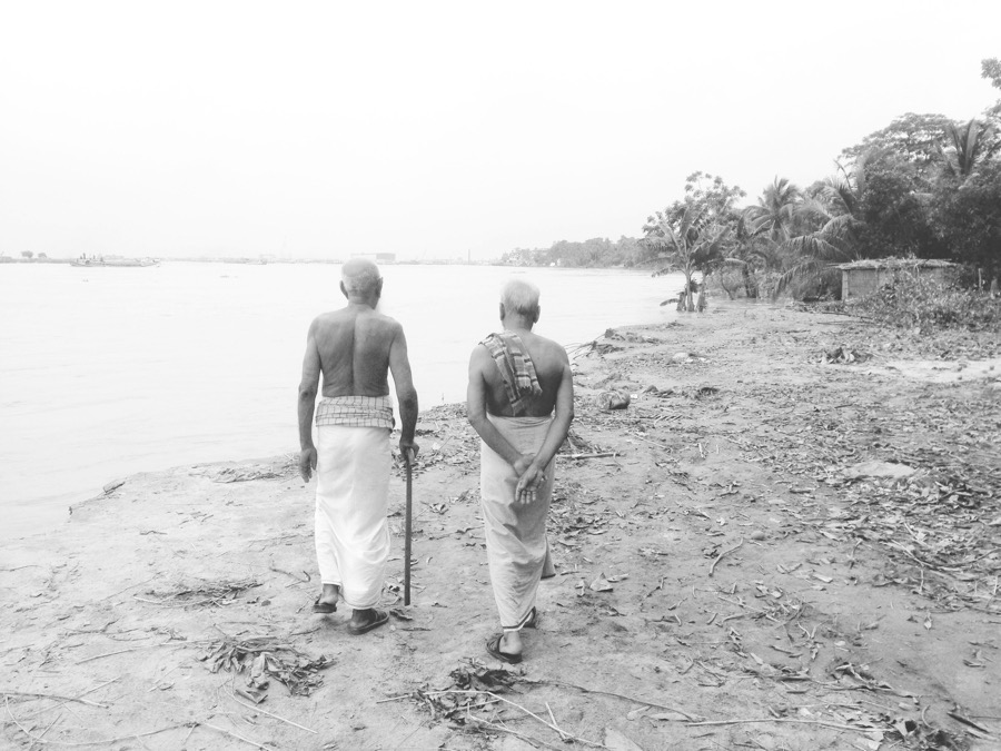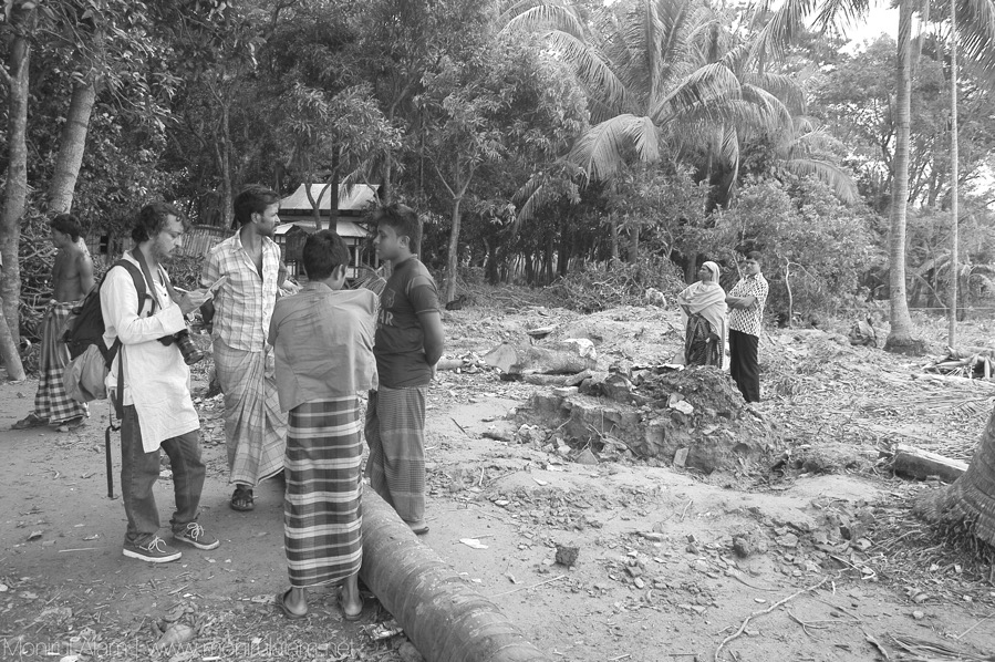 গাছ গুলো কেটে ফেলা হয়েছে —মূলকান্ডটির ন্যাড়া হয়ে পরে আছে । কোথাও ন্যাড়া কান্ডটির শেকর বেড়িয়ে মাটি আর পানিতে ঝুলে আছে ! এখন শুধু অপেক্ষা নদী গর্ভে যাবার ! কোথাও কোথাও বসতবাড়ির শুধু মাটি মাটির চিহ্ন টুকু আছে, দেখলে বোঝা যায় এখানে মানুষের বসতি ছিল— ছিল ঘর-বাড়ী, ছিল সাজানো সংসার । মূল সড়কটি কোথাও কোথাও ভেঙ্গে পড়েছে সেই ভাঙ্গা সড়কটির উপর রাখা হয়েছে ভাঙ্গা বসতবাড়ির আসবাপত্র— এখন অপেক্ষা শুধু তা অন্যত্র নিয়ে যাবার । সাজানো এই গ্রামটি তছনছ হতে সময় লেগেছে মাত্র এক সপ্তাহ !