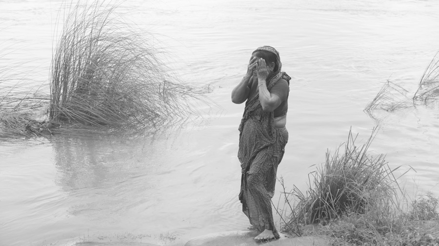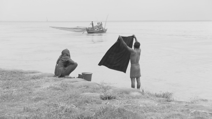 নদী পাড়ের ভূমিতে ভাঙ্গনের ক্ষত চিহ্ন ! বিধ্বস্ত গ্রাম—উপড়ে আছে গাছ, মাটি ফেটে প্রবেশ করছে স্রোতের পানি ! নদী গর্ভে বিলীন হচ্ছে এ জনপথ ! অথচ পদ্মা যেন নিবর্িকার ! সে কেবল ছলছল, খলখল করে সামনের দিকে ছুটে চলছে . . .
