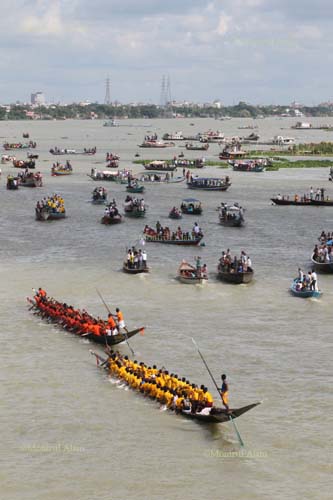 অনেকদিন এদিকটায় আসা হয় না; আজ যেন কি মনে হলো সঙ্গে ক্যামেরাটি নিয়ে বেড়িয়ে পরলাম। বুড়ীগঙ্গার এই দিকটায় এতোটা প্রাণচাঞ্চল্য নেই—সদরঘাটের মতো । এসব ঘাটে নৌকা খুব বেশী থাকে না যাত্রীও কম পারাপার হয় । ৭/৮ টি নৌকা ঘাটে সিরিয়াল দিয়ে যাত্রী পারাপার করে ।এক নৌকায় ৮/১০ জন যাত্রী হলে মাঝি তার নৌকা নিয়ে বুড়ীগঙ্গা নদী পাড়ি দেন । জন প্রতি পারাপারে দশ টাকা করে নেন তারা । আমি ঘাটের এক পাশে দাড়িয়ে ছবি তুলছিলাম আর মাঝিদের কথা শুনছিলাম ।