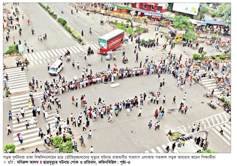 A group of Dhaka University students take part in a protest rally at Shahbag intersection in the capital demanding trail of the bus driver whose reckless driving killed Towhid Zaman,a second-year student of International relations department of the University.