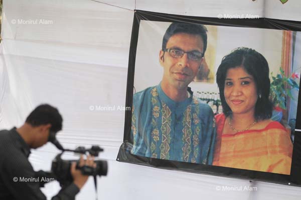 Pictures from Left to Right Amal Akash, Artist, Singer, Activist, Samageet. Shahidul Alam, Photographer, Activist, Curator, Drik. Tasmima Hossain, Editor, The Daily Ittefaq. Monirul Alam, Photojournalist, Educator, EPA. Shoeb Faruquee, Photographer, Educator, Photobank Gallery.