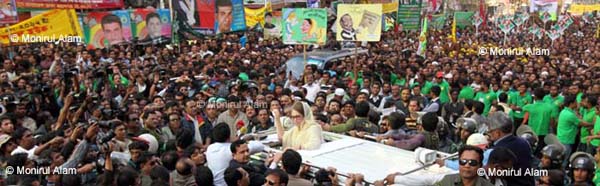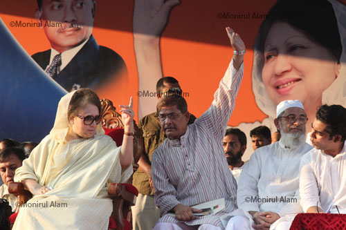 Archive Picture: BNP chairperson Khaleda Zia, waves to members and supporters during her speaking at the 31st founding anniversary of Jatiyatabadi Chhatra Dal (JCD) at Paltan Maidan in Dhaka, Bangladesh. January, 2010. © Monirul Alam