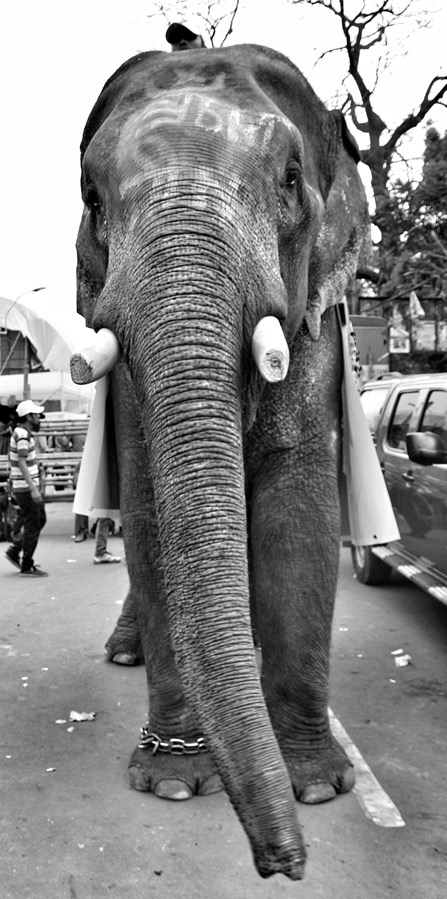 A circus elephant walk on the street at Shahbagh square during the Valentine’s Day celebrations organized by the Dhaka South City Corporation on 14 February, 2016. In an atmosphere of fun, frolic and festivities, people across the country celebrated the Valentine’s Day It organized an innovative programmed titled “Pranoshokha Dhaka – Love for Dhaka” at Shahbagh intersection, considered the gateway to the DU campus for most of the city dwellers.