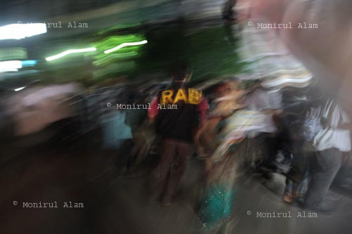 It was around 9.30 pm I look around with my office and saw our news paper layout which it will be published next day, suddenly my news editors told me, RAB killed 5 muggers in Uttar please move on as early as possible, and maybe we lead that news. I left my office within minutes with my camera and ride my motorbike as faster to cover on the spot in the city of Uttra 13 sector near Mascot Plaza, at Sonargaon Janapath.