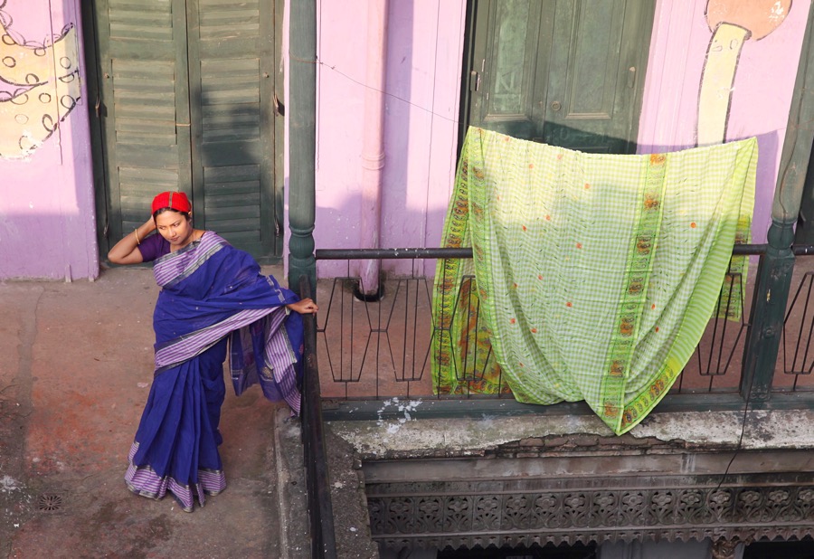 A young girl stand a beautiful old building at old part of Dhaka on the balcony to dry her hair after finished his morning bath. Age-old traditions and a sense of community among the residents of Puran Dhaka have remained particularly strong as the rest of the city continues to modernize.
